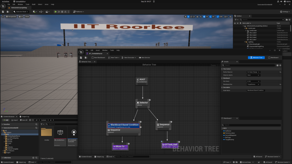 Either Unreal Engine 5 AI has become more intuitive or I am spending right time with the AI. Recently I made a zombie game first person shooter prototype with UE 5.4.4. The natively playable prototype binaries can be found at this GitHub page (available for Linux, Mac, and Windows). But, as with several different software, the versioning usually, in some sense, can make it non-intuitive.